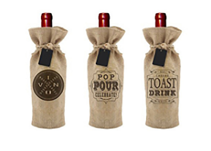 Borsa per bottiglia di vino con stampa personalizzata dalla fabbrica cinese, borsa per vino in juta con coulisse |