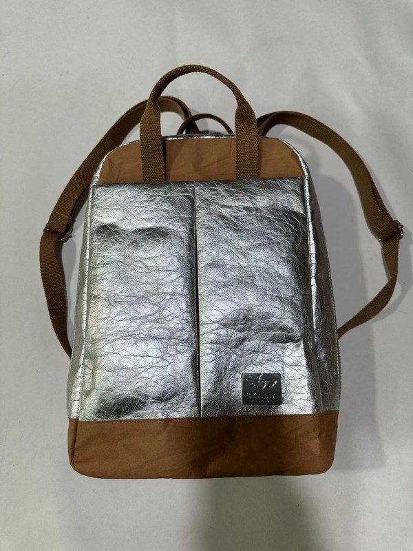 Zaino in carta Kraft lavabile, riutilizzabile, biodegradabile, dorato e argentato